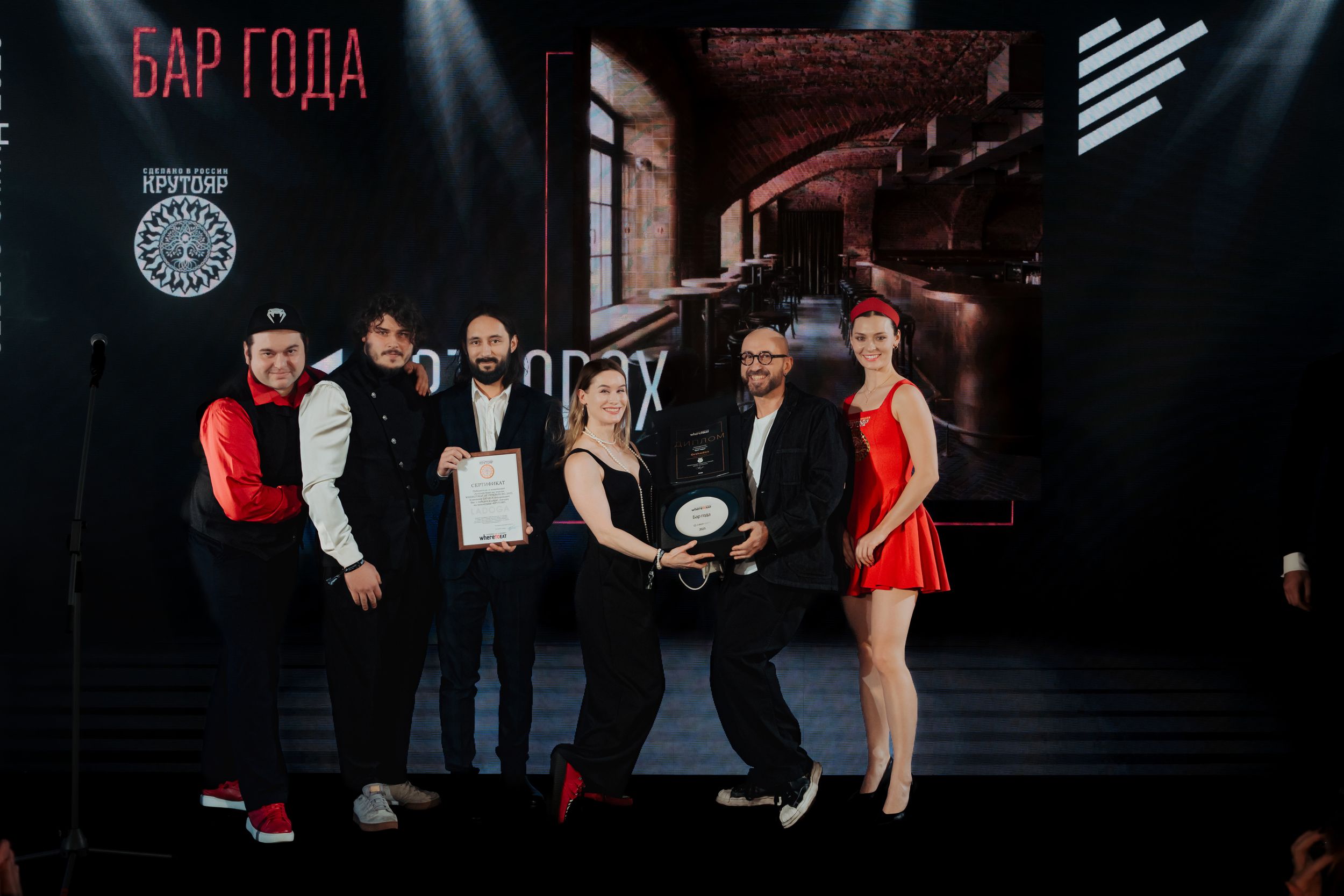 В спецноминации «Бар года», партнером которой является наша компания с брендом виски «Крутояр», победил бар Orthodox. Награду победитель получил из рук бренд-амбассадора LADOGA Владимира Коврижных.